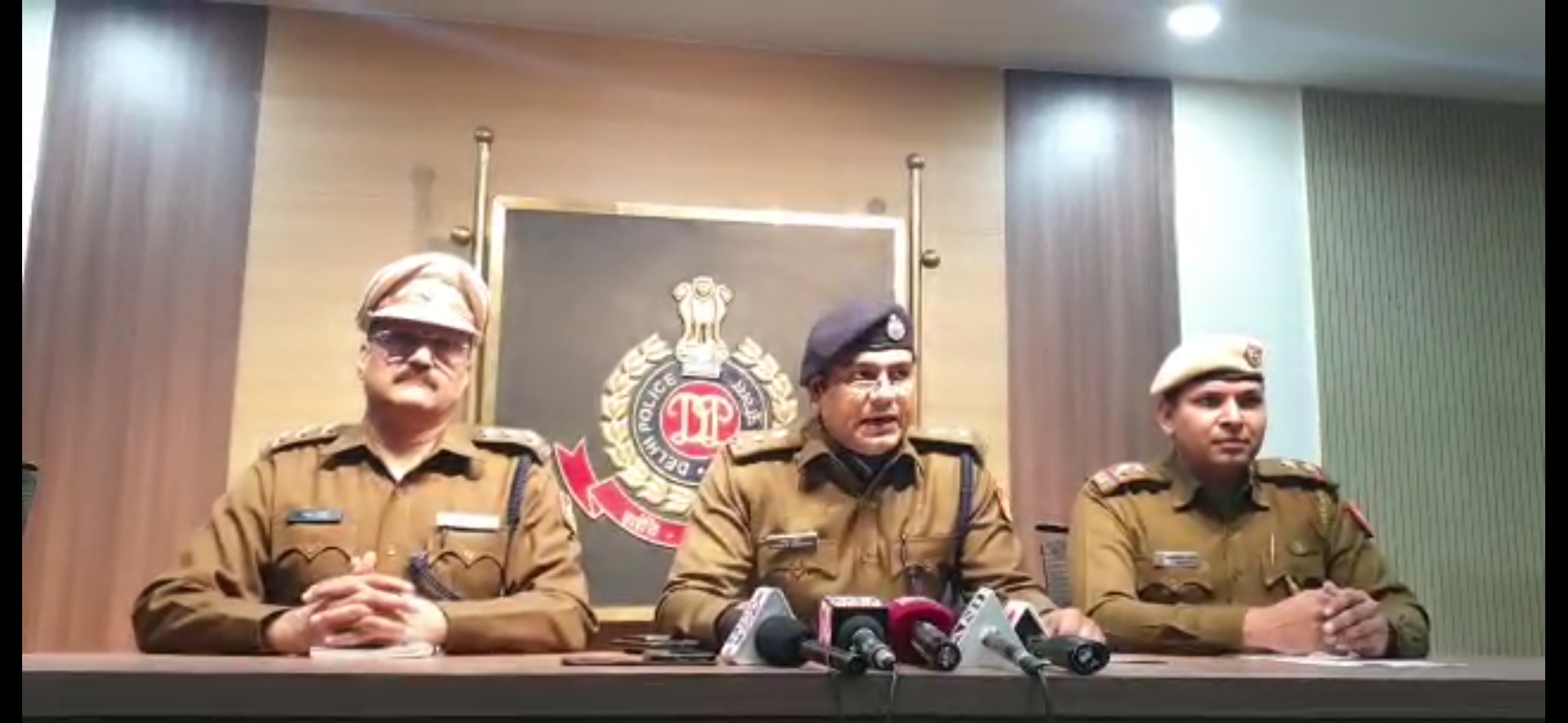 Dwarka DCP Shankar Choudhary addressing press conference at Delhi Police Headquarters on Nov 17